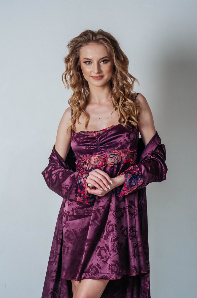 Виготовлений з стрейч-атласу вставки з еластичного мережива.