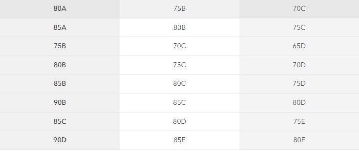 Наприклад, розмір 80 D можна “замінити” на 85 С ( збільшуємо об’єм під грудьми, і зменшуємо чашку) або на 75 Е ( зменшуємо об’єм під грудьми , і навпаки збільшуємо чашку )