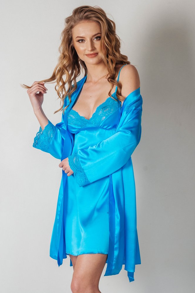 Набір сорочка та халат. Виготовлений із стрейч атласу,вставки з еластичного мережива.